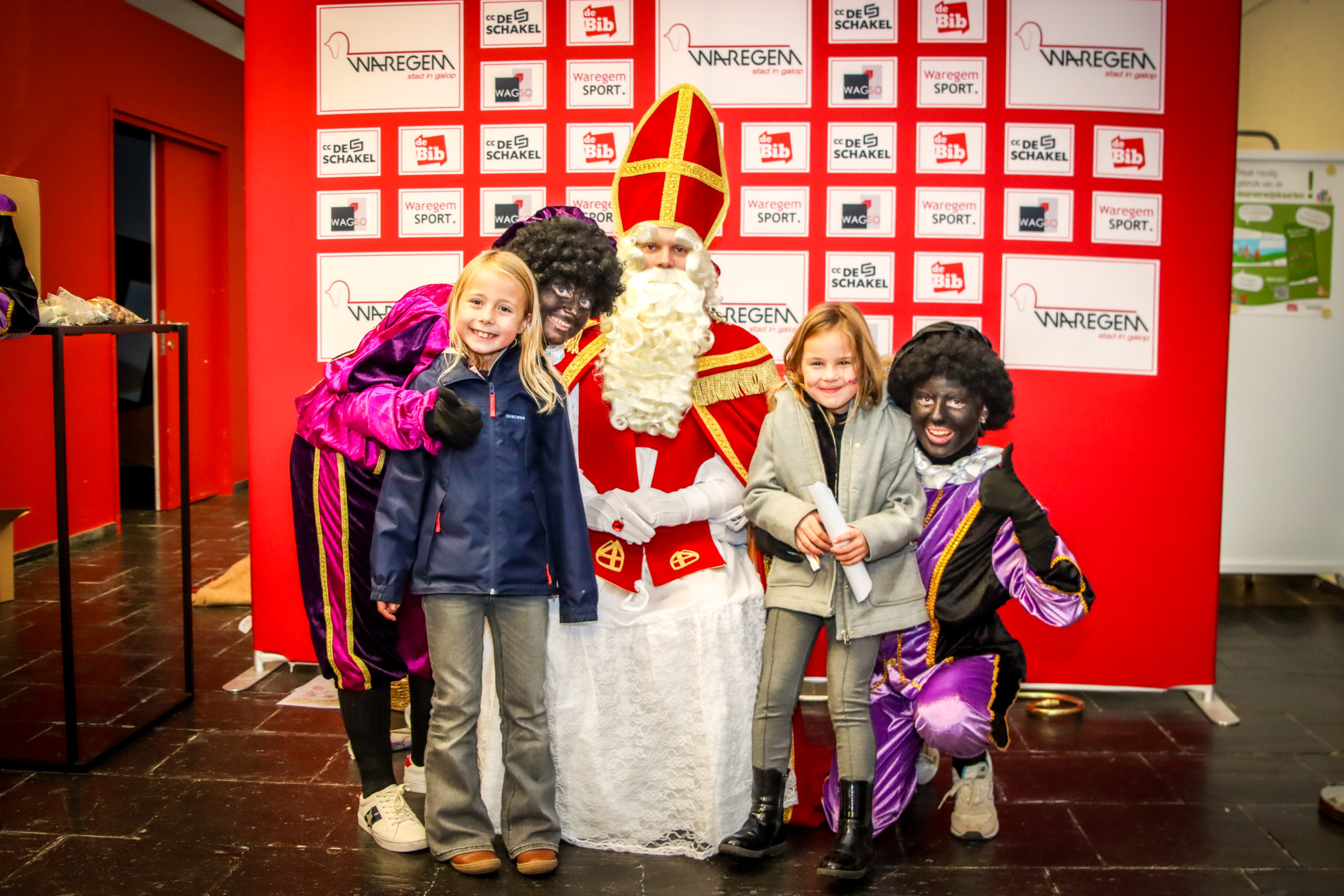 De Sint sloot zijn bezoek af met een fotomoment in het stadhuis. Zo’n 500 gezinnen schoven aan voor een onvergetelijk moment en zij ontvingen een snoepzak, kleurplaat, wascostiftjes en een knutselplaat van CC De Schakel. En zo kunnen we allemaal beginnen aftellen naar 6 december. Want… ook dit jaar staat er geen enkele Waregemse naam op de lijst met stoute kinderen!