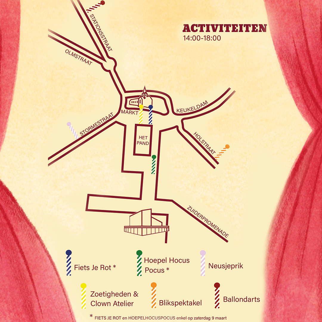 - Afhaalpunt voor de zoetigheden & Clown Atelier op de Markt