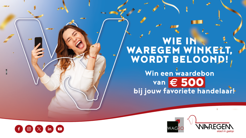 De lokale winkelapp van Waregem kreeg een nieuw likje verf.  Met enkele leuke winacties bestaat er geen twijfel meer over: wie in Waregem Winkelt, wordt beloond. Alleen al dit jaar maak je kans op een prijzenpot van 5000 euro bij winacties!